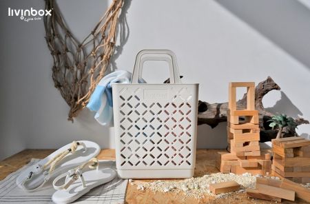 The Perforated Tote Bag, a multifunctional and durable tote designed for the modern on-the-go lifestyle. With a sleek, ventilated design and superior load capacity, the LV-10 redefines portable storage for both indoor and outdoor use. Engineered from waterproof, puncture-resistant LDPE, the LV-10 is lightweight yet rugged enough to carry up to 10 kilograms, making it ideal for daily commuting, shopping, school activities, sports, and leisure. Its clean, perforated aesthetic and versatile design suit a wide range of users — from professionals and students to homemakers and outdoor enthusiasts. We designed the LV-10 to combine functionality with contemporary aesthetics. It's not just a bag; it's a portable lifestyle organiser that adapts to wherever your day takes you.★Highlights: • Multifunctional Usage: Ideal for use as a beach bag, office tote, shopping bag, or grocery carrier. • Device-Ready: Spacious enough to fit a 13" MacBook Air, making it perfect for co-working spaces and remote work. • Durability Meets Design: Constructed with LDPE for strength, flexibility, and waterproof performance. • Stable & Non-slip Base: Raised bumps on the bottom prevent slippage and ensure stability, even on uneven surfaces. • Easy Maintenance: Rinse clean after use — perfect for outdoor and sporting activities. • Personalizable Touches: Perforated holes allow users to decorate with accessories for added personality. • Available Colors: Pale Green and Beige, suited for both minimalists and trendsetters.★Specifications: • Model No.: LV-10 • Dimensions: 24.7W x 14.7D x 36.5H cm (including handle) • Material: LDPE • Load Capacity: 10 KG • Colors: Pale Green, Beige📸 Instagram: @livinbox.us 🎥 YouTube: @shuterlivinbox1969 SHUTER is a storage containers: desk organizers, plastic storage cabinets, portable project cases, office storage bins, collapsible crates, stackable storage bins manufacturer from Taiwan since 1969. Trust in SHUTER's ISO-certified plastic storage products. With advanced technology and rigorous quality control, we ensure durability and functionality in every piece. Create your ideal storage setup with SHUTER's customizable options. Choose from a variety of sizes, styles, and colors to match your specific needs and aesthetics.
