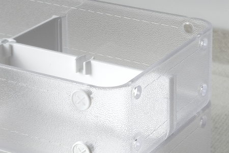 Built-in bottom latches allow the Snap Bin to stack securely onto the MD Series, creating a complete and expandable desktop storage system.