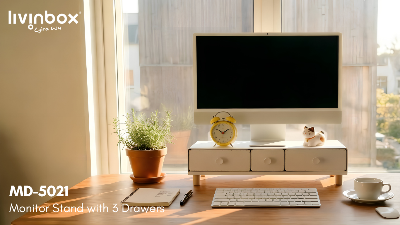 Dudukan monitor dengan 3 laci | MD-5021 | Solusi Penyimpanan Tahan Lama - livinbox