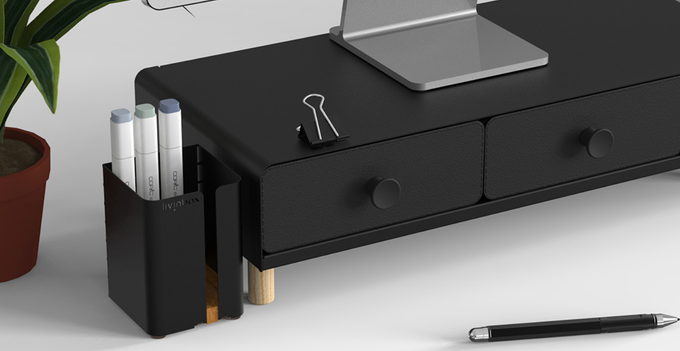 Dudukan monitor dengan 3 laci | MD-5021 | Sistem penyimpanan terorganisir - livinbox