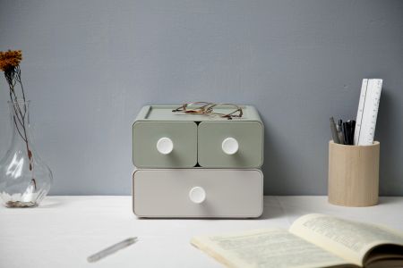 Questo organizer da scrivania in plastica con cassetti è realizzato in plastica vergine PS e PP e presenta due dimensioni di cassetti per riporre oggetti...