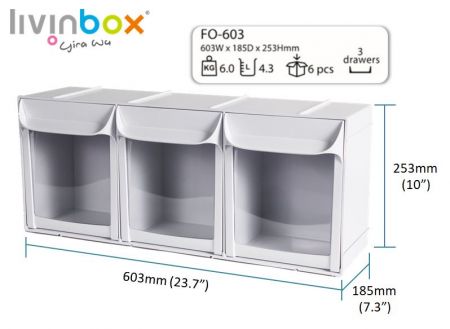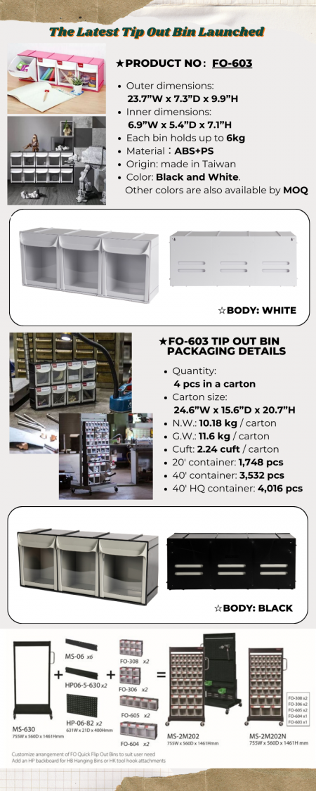 最新の革新、FO-603の3つの4.3L引き出し仕切りを備えたFO-603 Tip Out Binのローンチを喜んでお知らせします。
