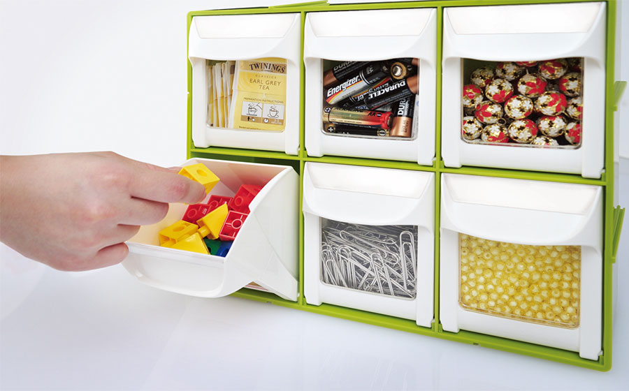 - 透明な引き出しの前面とラベルで中身が簡単に確認できる。