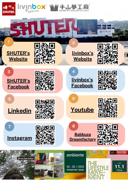 SHUTER Enterprise создала уникальные бренды для различных товарных линий. livinbox, гордый тайваньский бренд, сосредоточен на предоставлении пластиковых контейнеров, ящиков и органайзеров для канцелярских принадлежностей, рукоделия, швейных принадлежностей и домашнего хранения. С другой стороны, бренд SHUTER концентрируется на предложении ящиков для инструментов, тележек для инструментов, выдвижных контейнеров, верстаков, шкафчиков и металлических шкафов в качестве решений для рабочего пространства.