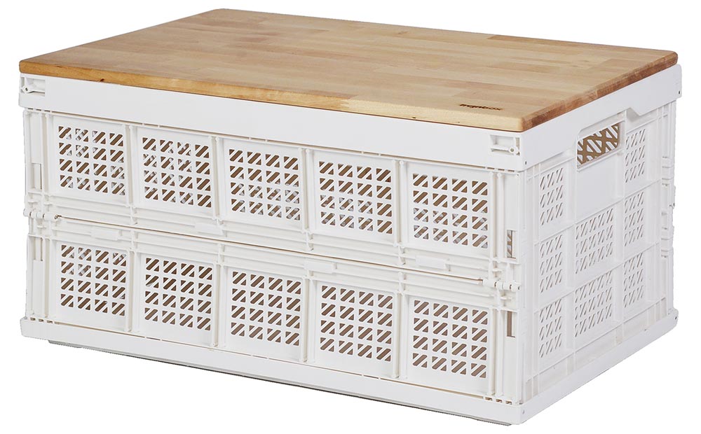 Bàn gỗ để cho giỏ lưu trữ gập 44L | Thùng chồng lên nhau có nắp: Lưu trữ dễ dàng, gọn gàng | SHUTER